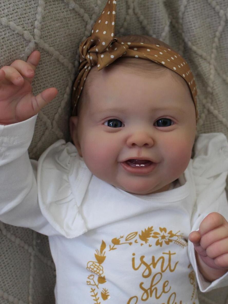 帽子をかぶった55cmは綿の体を模倣して赤ちゃんの笑顔の男の子の誕生日プレゼントを再生します。