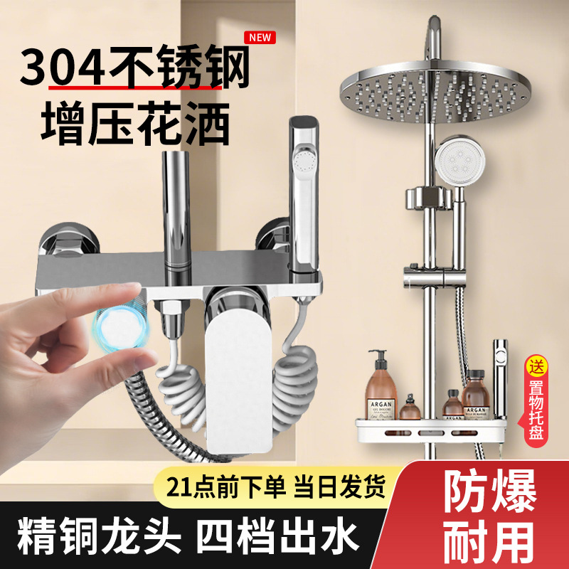 国境を越えたステンレスシャワーシャワーセット家庭用冷熱蛇口シャワー室シャワー過給シャワーヘッド