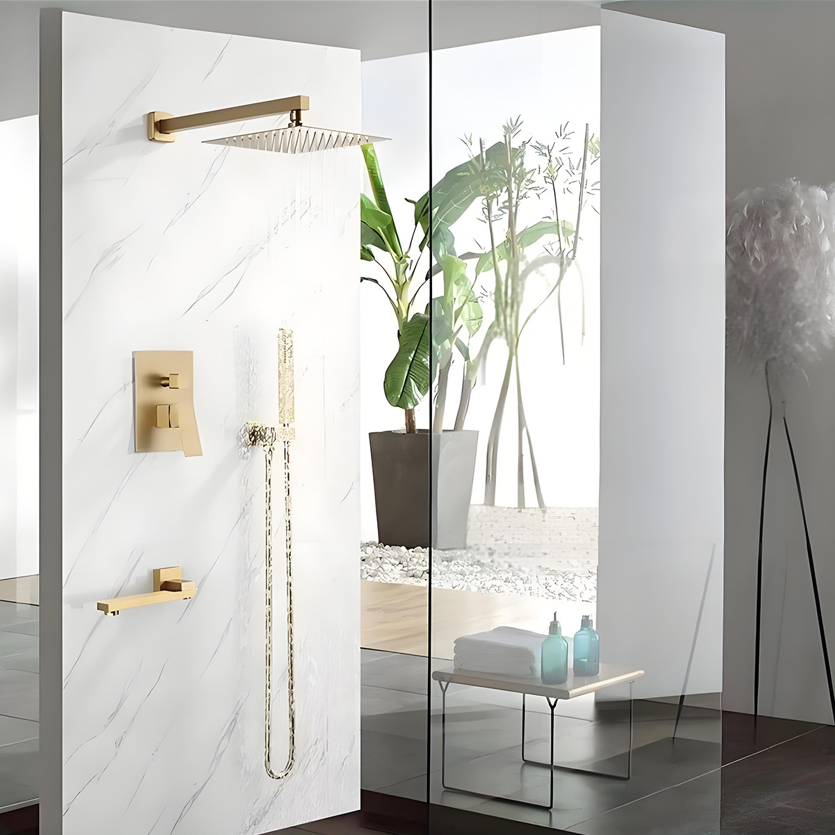 ガングレーのモダンなオールインワン収納ラックシャワーシャワーセットクリームホットとコールドシンプルなブラッシュゴールド多機能