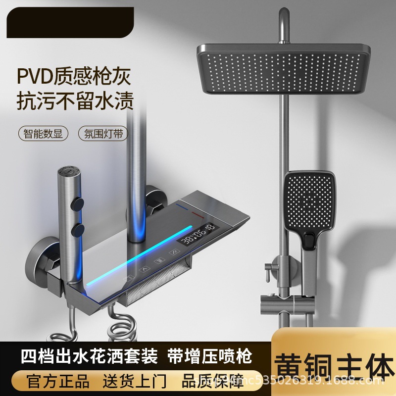 水メッキグレー全銅ホットとコールドデジタルディスプレイシャワーセットホテルホームバスルームバスシャワーブースタースプリンクラー