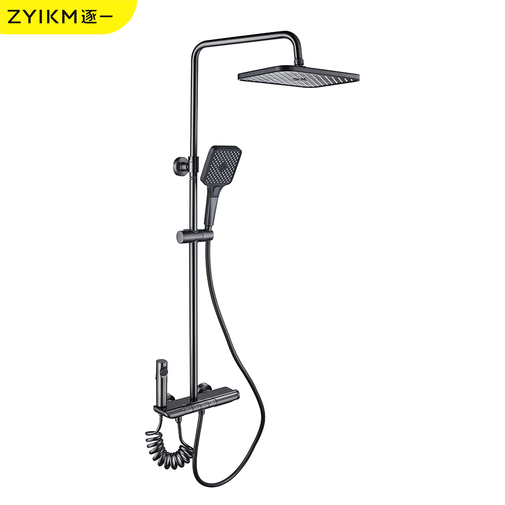 デューティー恒温シャワーセット家庭用黒加圧浴室レインシャワーヘッドシャワー表面実装工場卸売