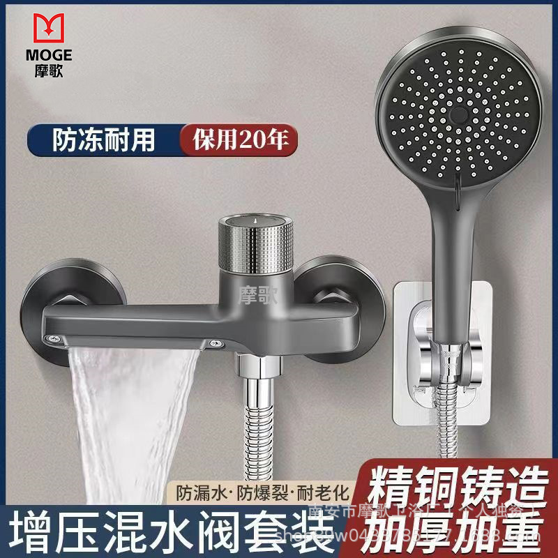 全銅雅黒色簡易増圧シャワーセット簡易ホテル浴室シャワー混水弁冷熱浴槽蛇口