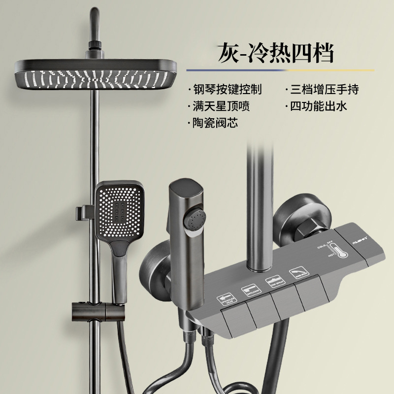 ピアノキー加圧ノズル温冷シャワーセット家庭用バスルームシャワーセットコンプリートセット