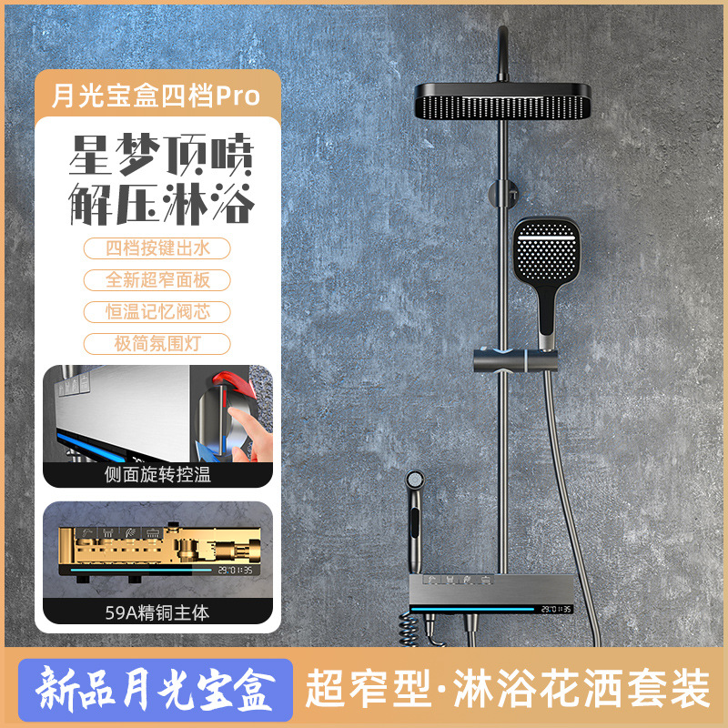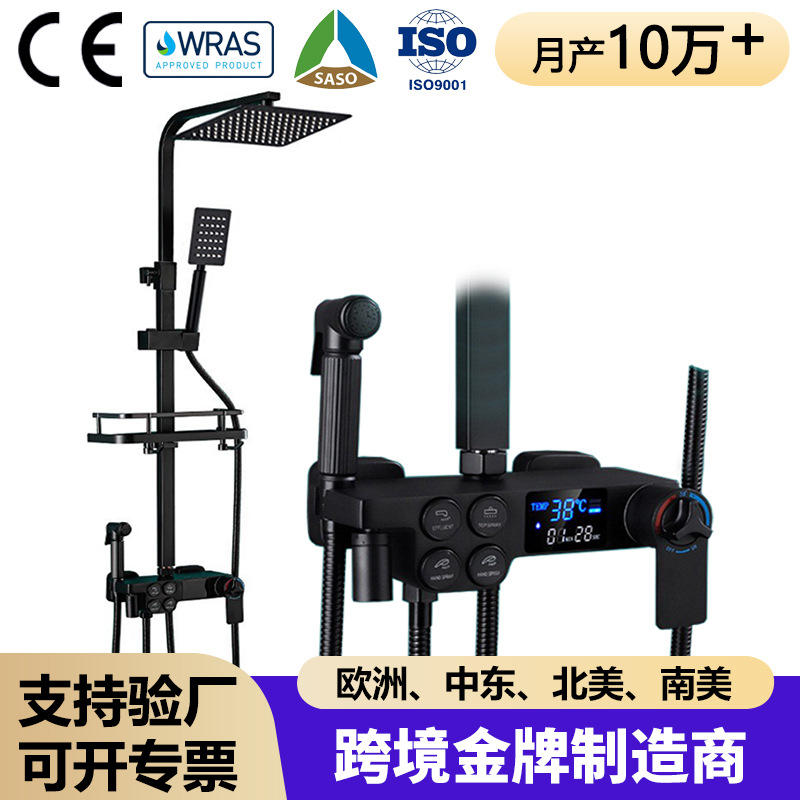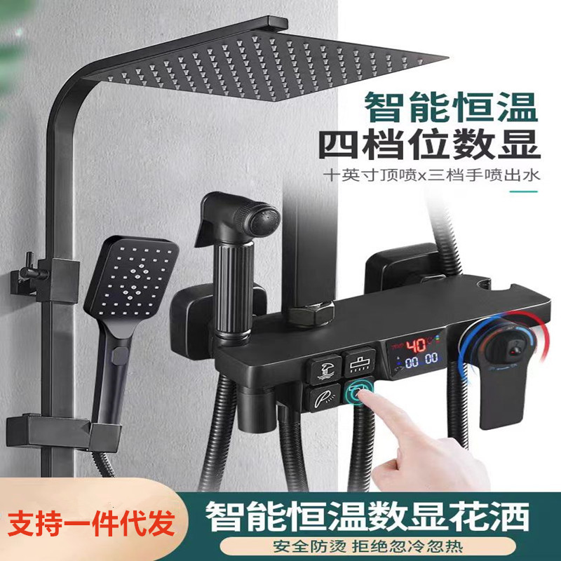 クロスボーダー黒色花こぼれデジタル表示恒温シャワーセット全銅浴室増圧新型四段多機能通用