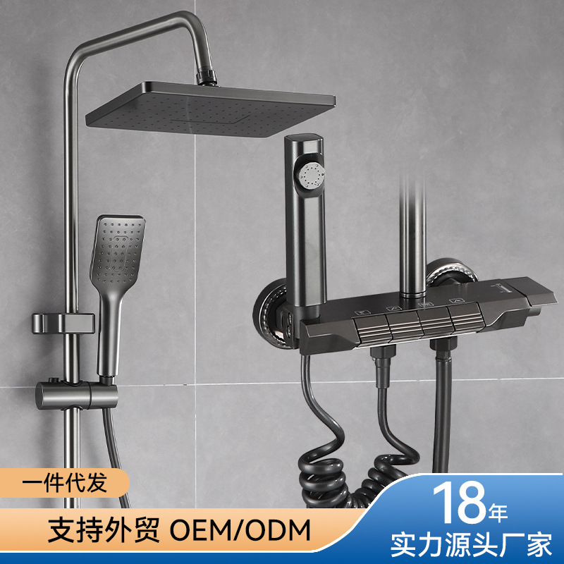銃灰色空母全銅シャワーセット家庭用浴室ピアノボタン増圧シャワーセット