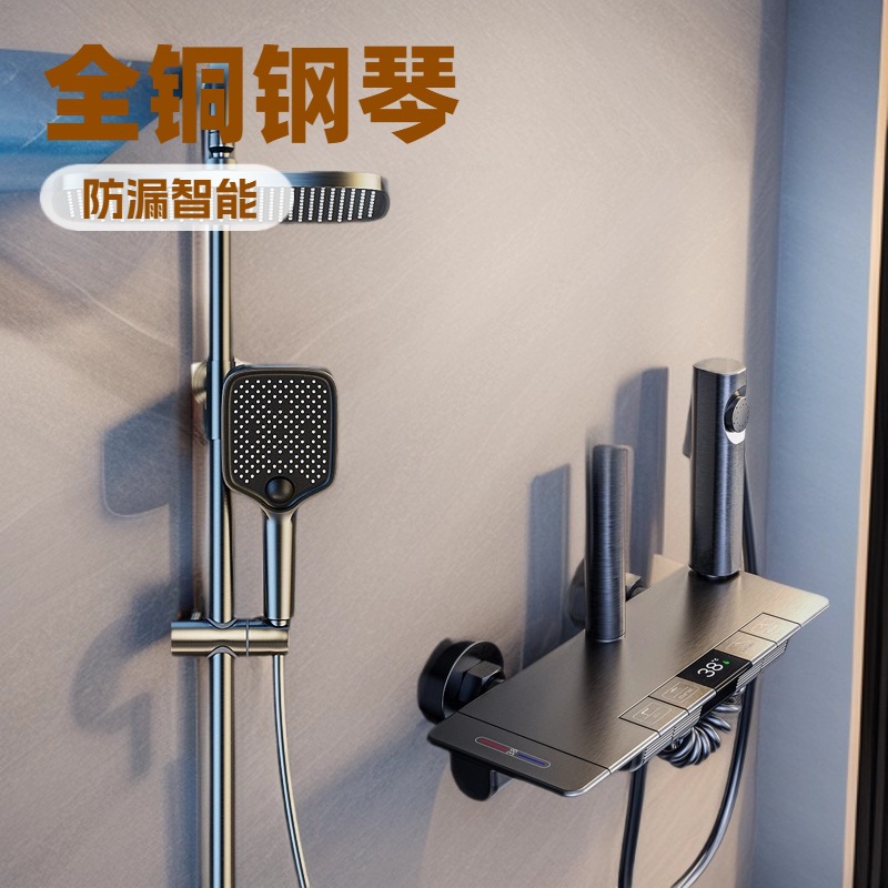 シャワー銅セット、恒温シャワー、ピアノ雰囲気、デジタルディスプレイ、スマートブーストバス、家庭用ノズルの完全なセット