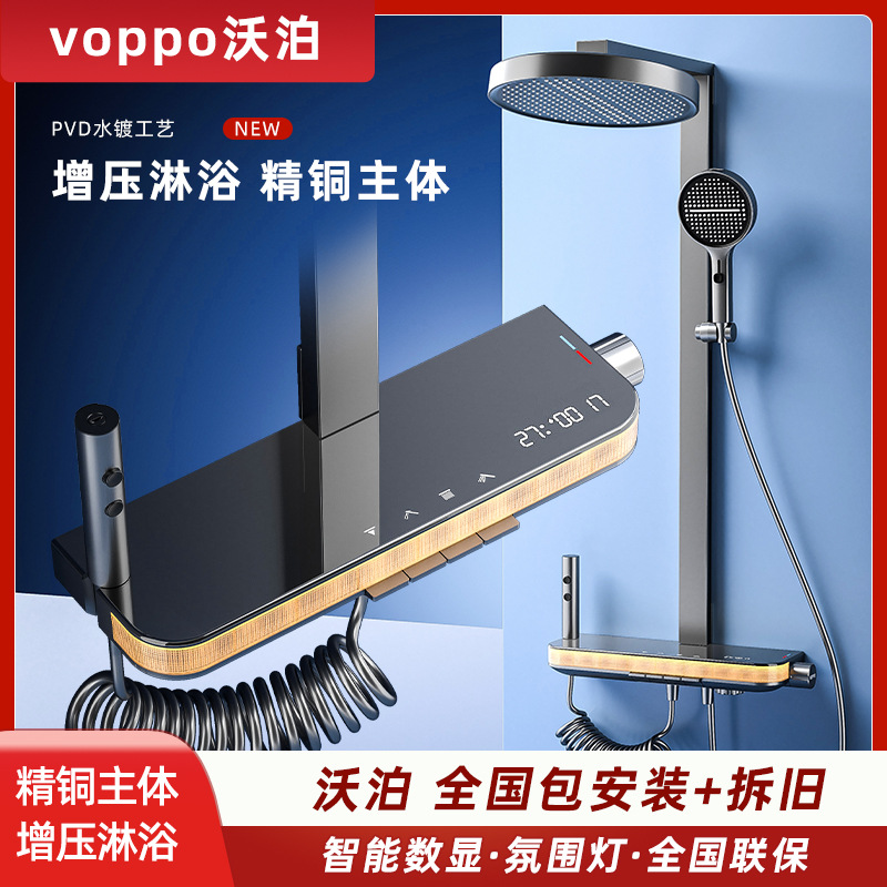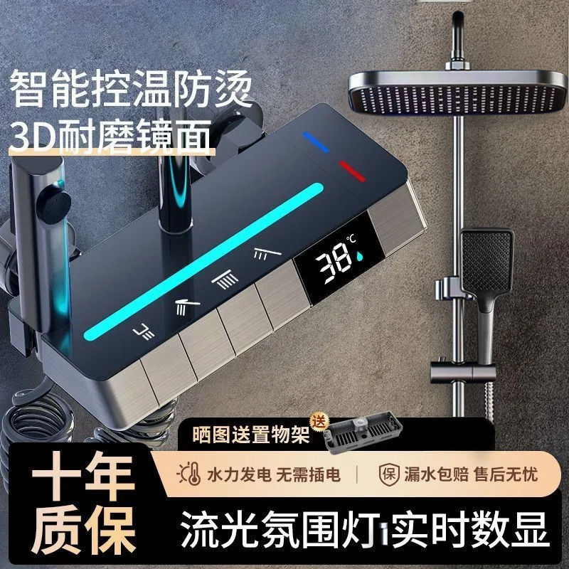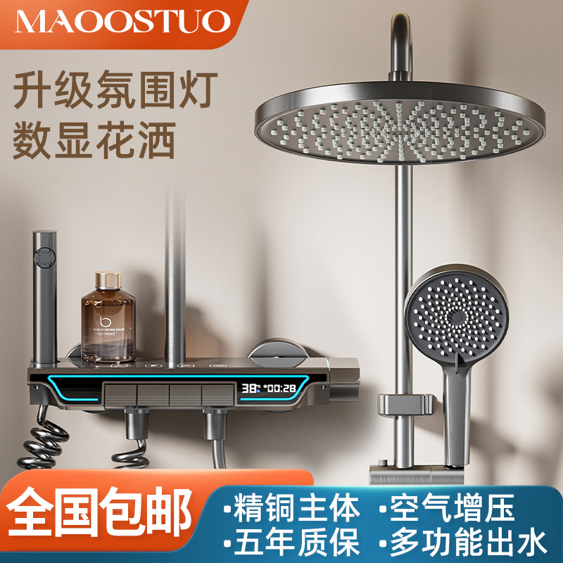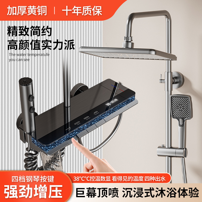 シャワーセットピアノ恒温雰囲気ブースト浴室バスデジタルディスプレイスマートノズルバスホームファイン銅