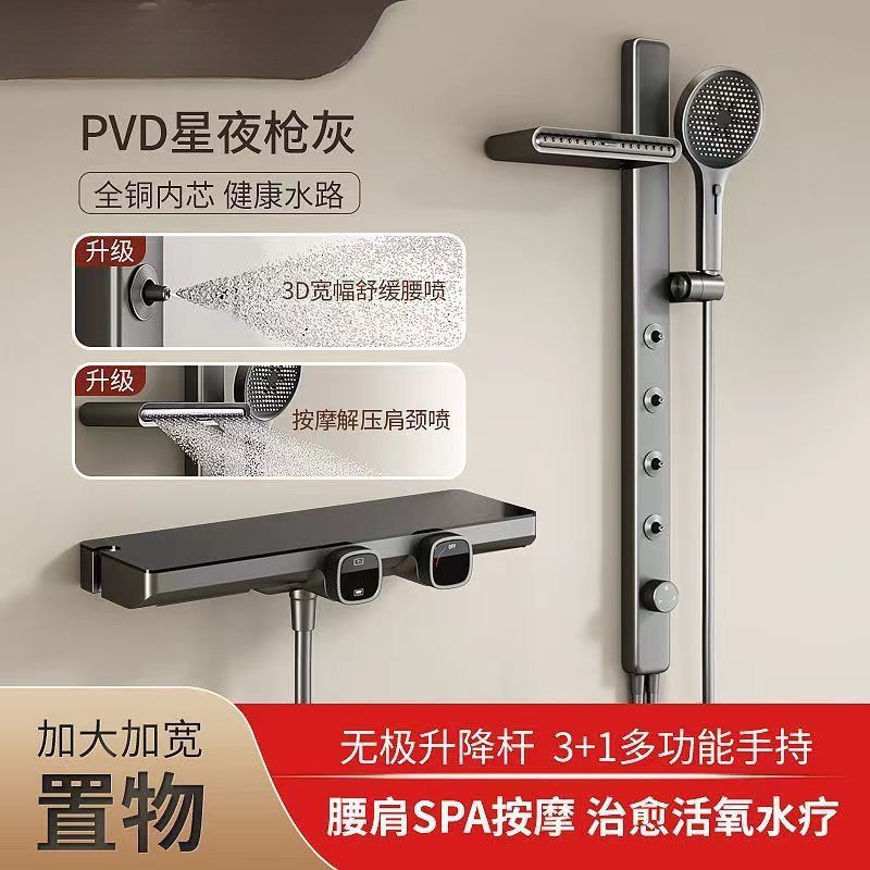 2025 シャワーセットシャワーガングレーピアノキー雰囲気ライトホテルのバスルームホーム恒温デジタルディスプレイスーパーチャージャーシャワー