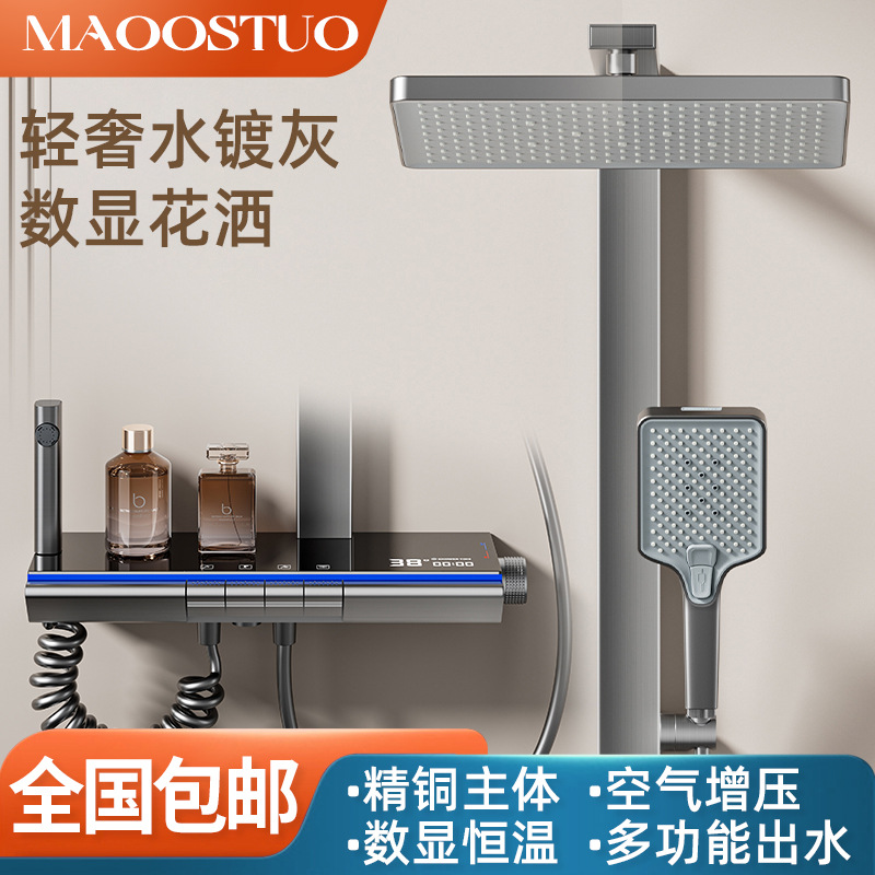インテリジェント恒温シャワーセット ガン グレー全銅製家庭用シャワー ブースター多機能ディスプレイ周囲光