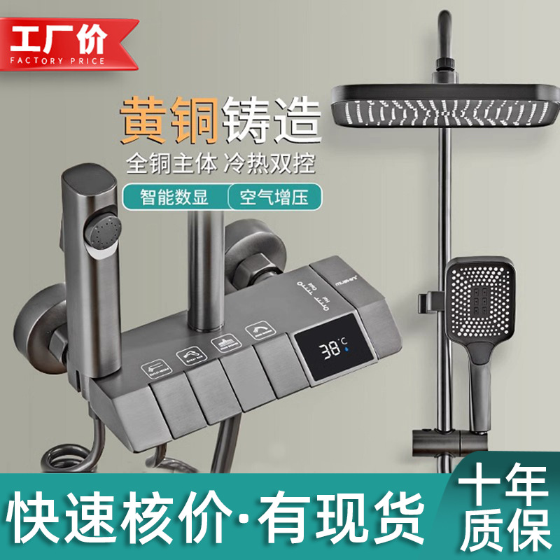 全銅シャワーデジタル表示恒温雰囲気浴室入浴グレーピアノ家庭用過給ノズルボタンシャワー