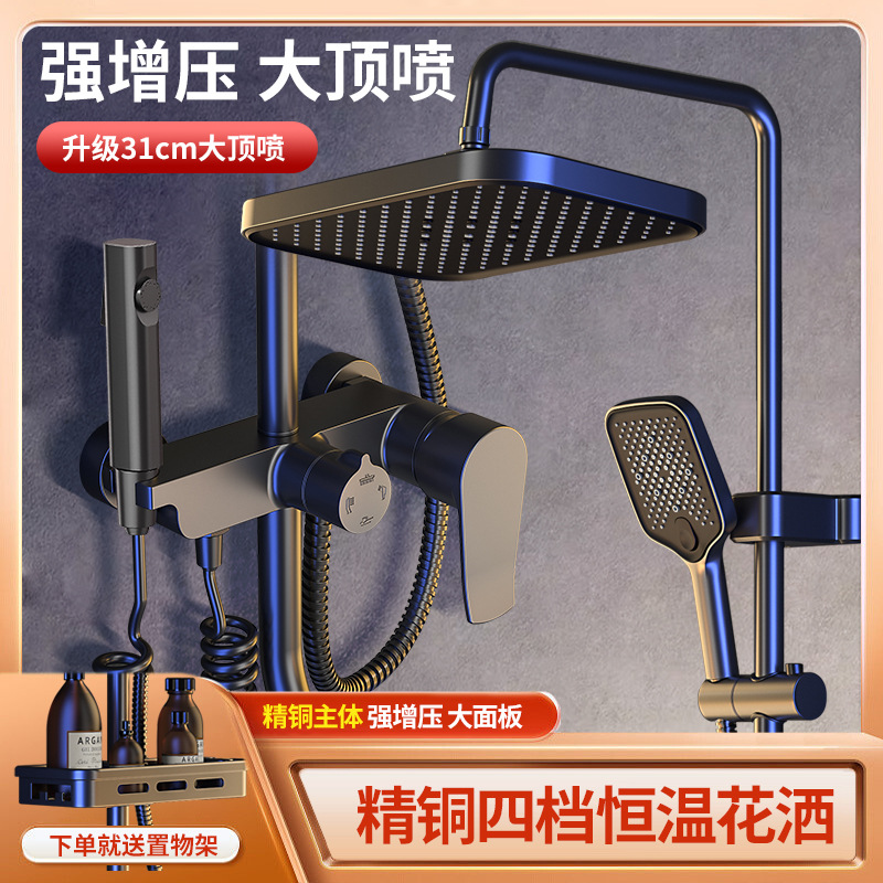 モダンな新しいガングレーシャワーセットシャワーフルセットインテリジェント恒温家庭用全銅コンプリートセット