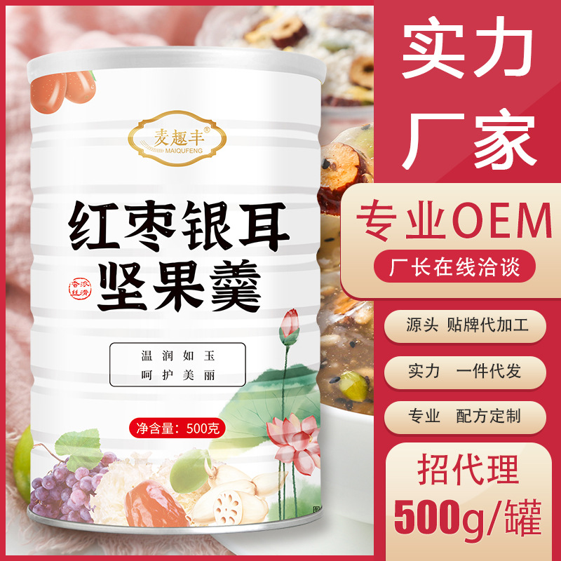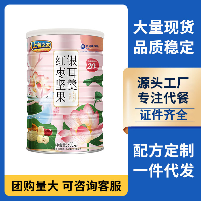 奇亜種のナッツのレンコンの粉の銀の耳の赤いナツメのレンコンの粉のスープの缶の500gの朝食は満腹の代の食事の粉を調合して代行することができます。