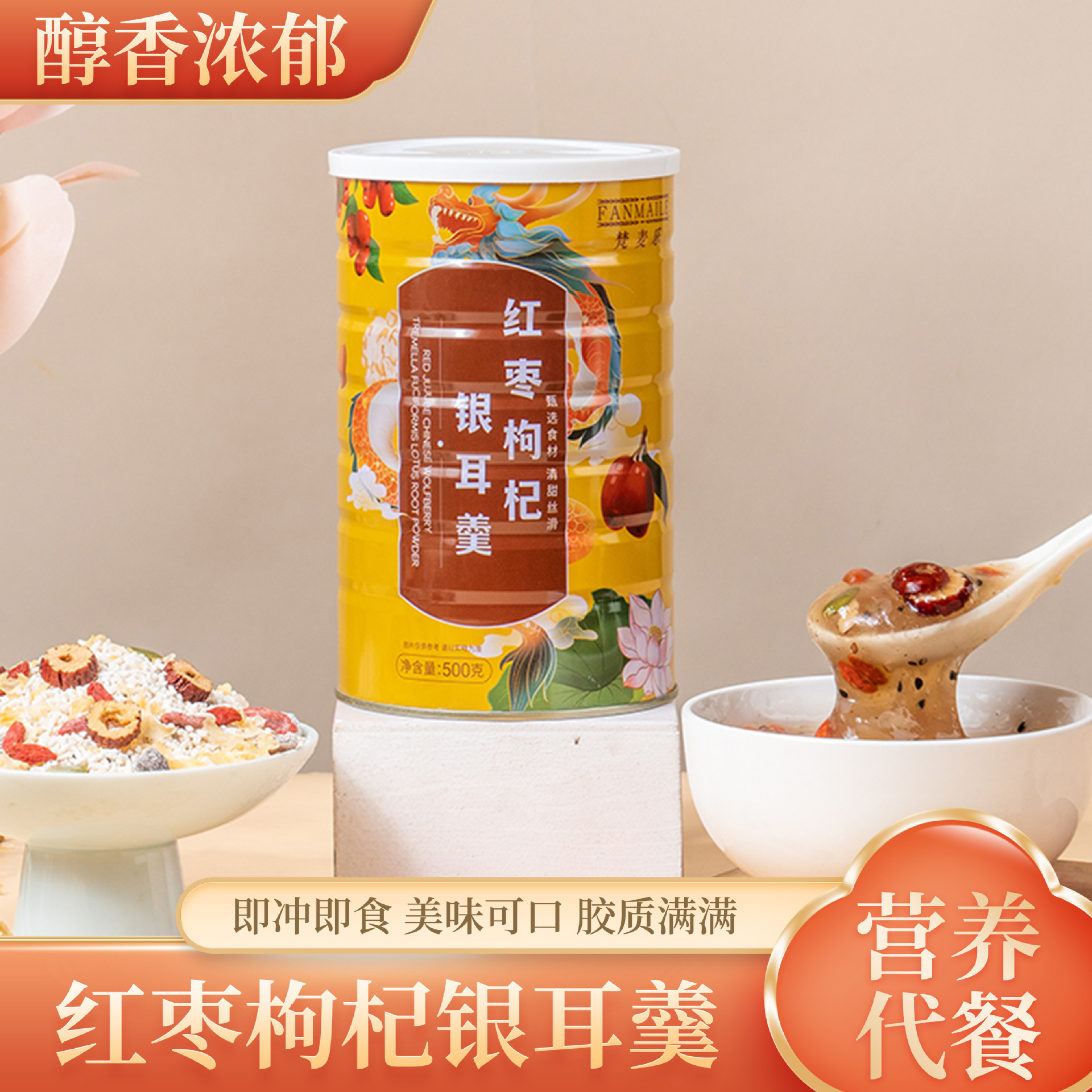 赤いナツメ、ナッツ、白きくらげ、レンコン粉の顆粒状フルーツ栄養朝食、満腹感のある食事代替粉末、栄養食代替品 500g 缶入り