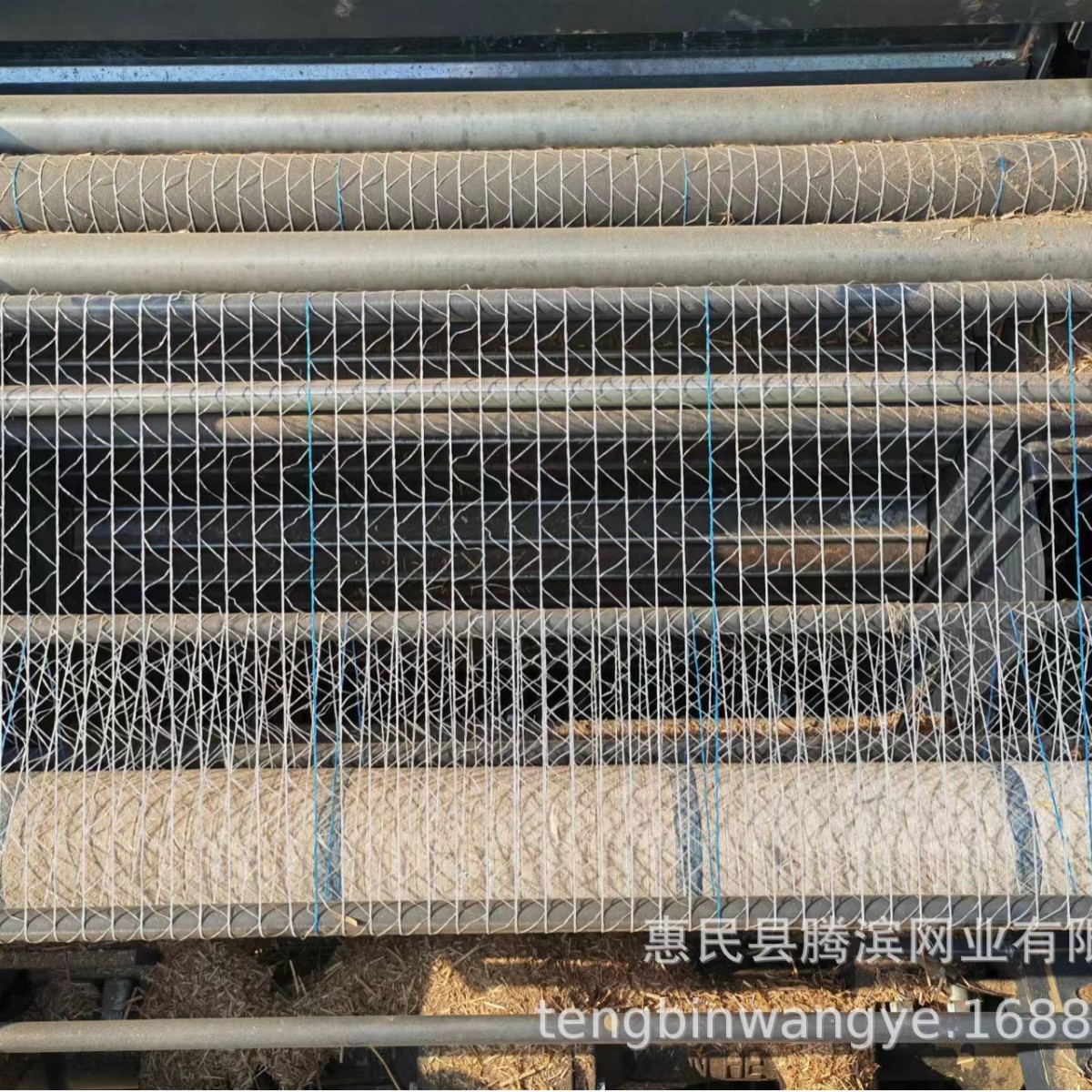 草網青貯蔵包装網のわらを巻いて網の麦草を縛る