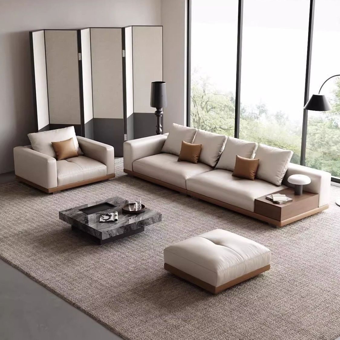 本革直列ソファ、大小の住宅のリビングルームに最適、2025年新モデル、モダンでシンプル、軽やかな高級家具、本革フルセット