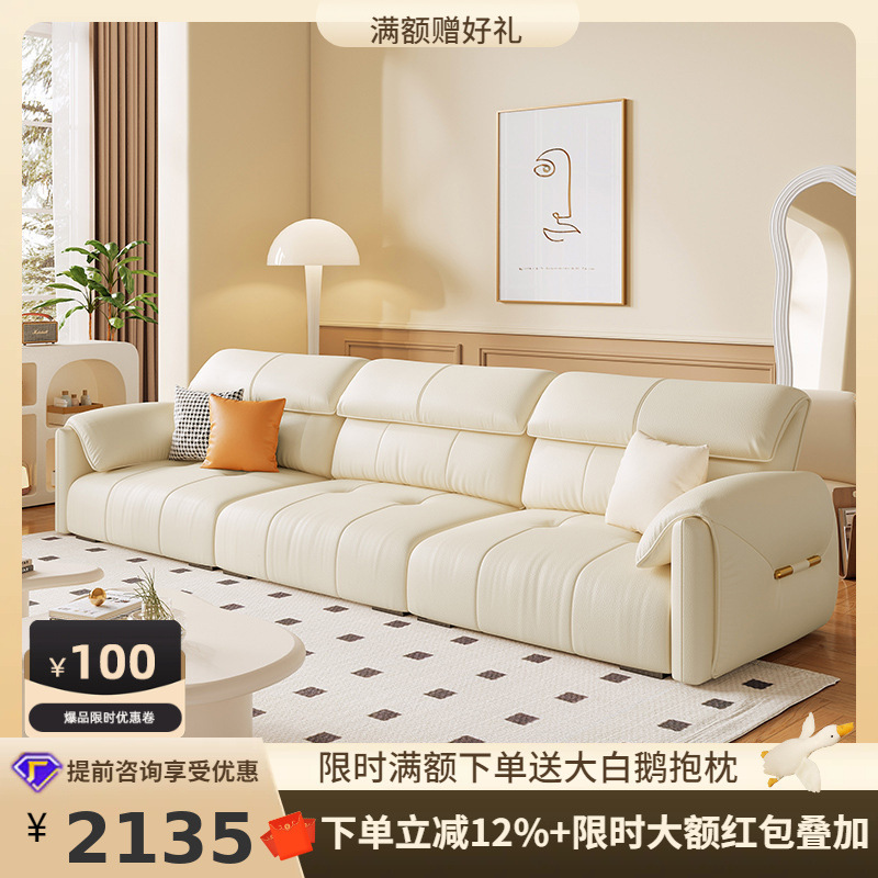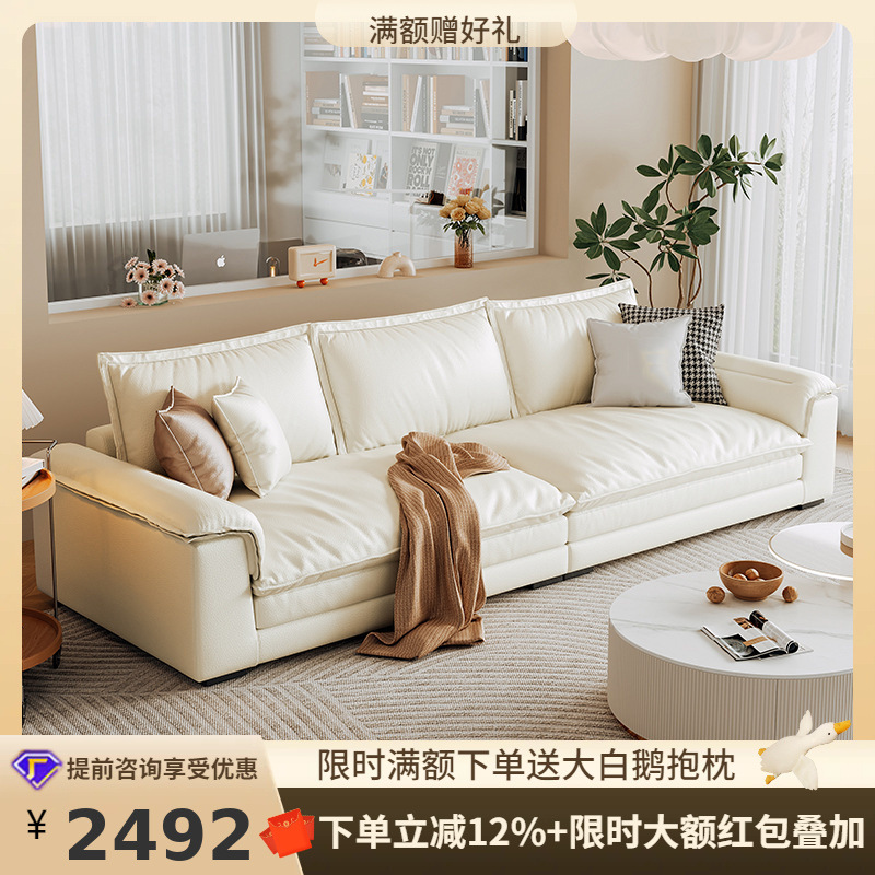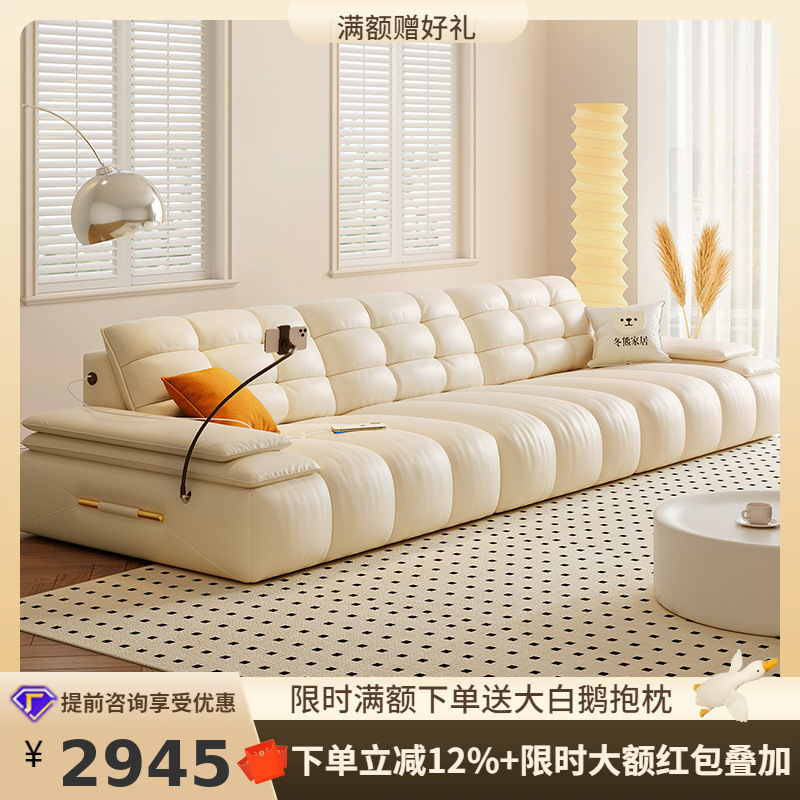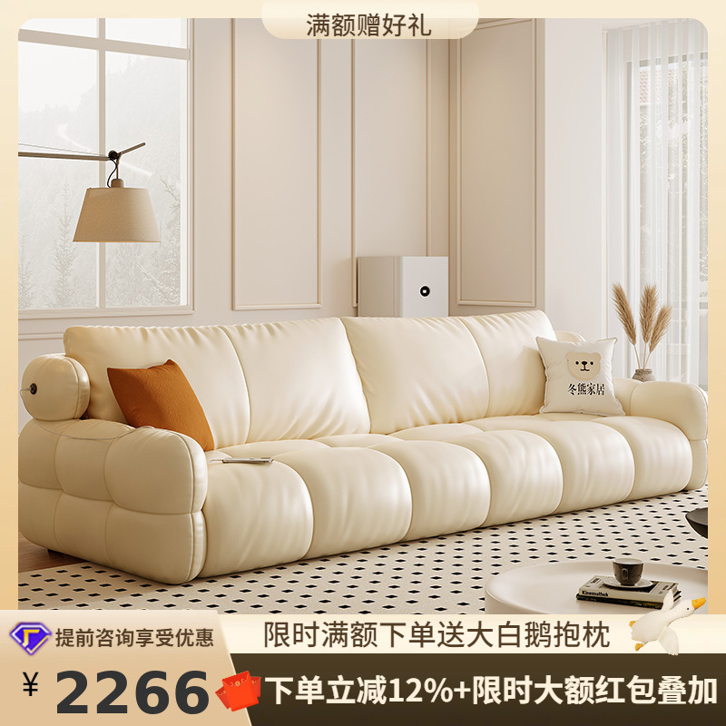 桐語特ローレンスフランス軽贅沢現代雲機能ソファーリビングルーム泡芙マシュマロ本革ソファ