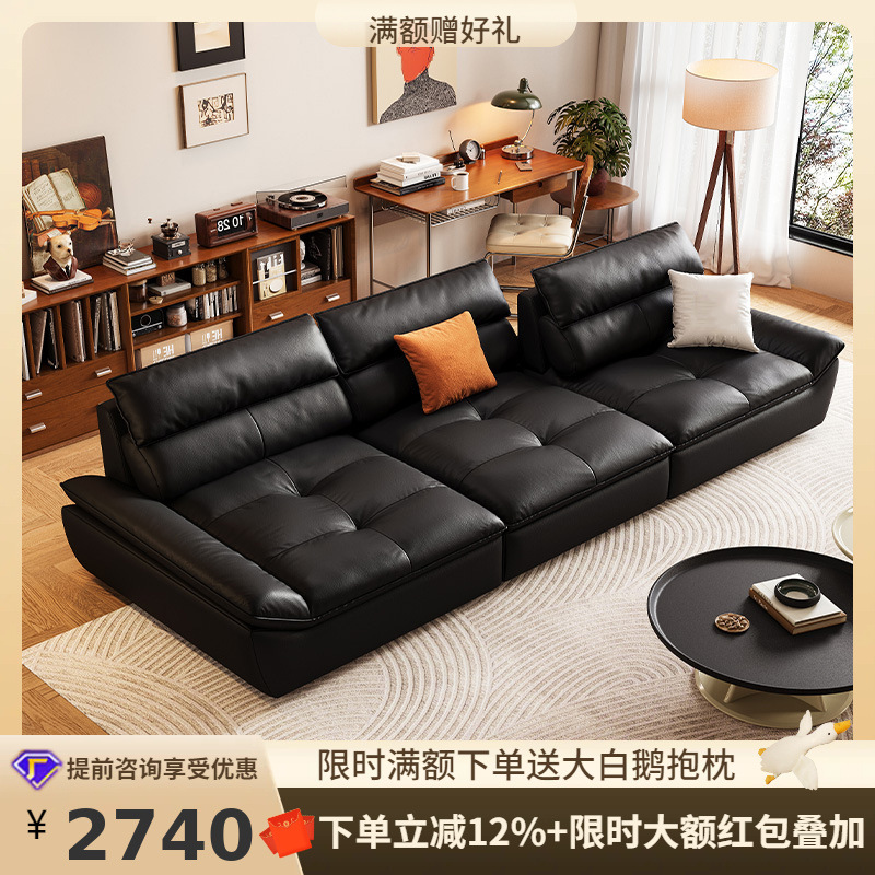 Tongyu Te 2025 ストレートソファ モダンなリビングルーム 小さなアパート フレンチレトロ ブラックピアノキー レザーソファ