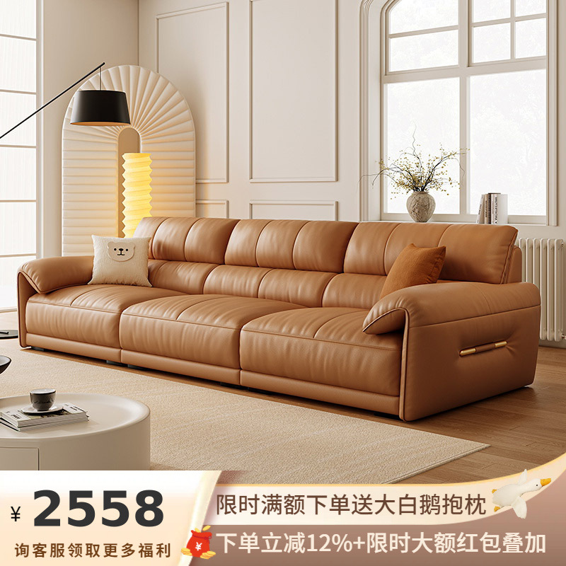 イタリア式の極めてシンプルで豪華な本革ソファ別荘大平層ハイエンドリビングルーム牛革ストレートソファ小戸型新型