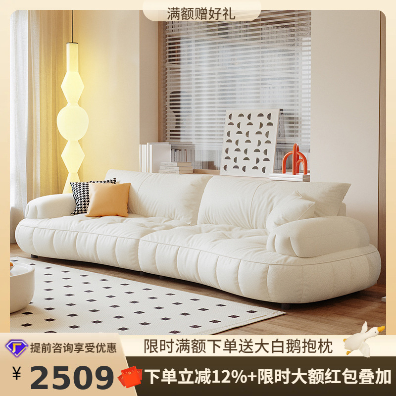 クリーム風マシュマロ布芸ソファー客間三人位極簡フランスレトロ羊小毛北欧シンプルマンション