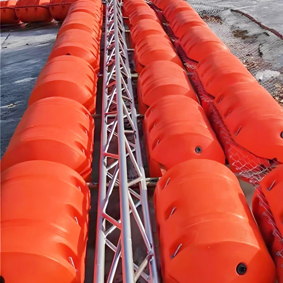 海上砂汲み・石油輸送パイプライン PEフロート 水中浚渫パイプ 浮体 河川汚物・ゴミ遮断フロート