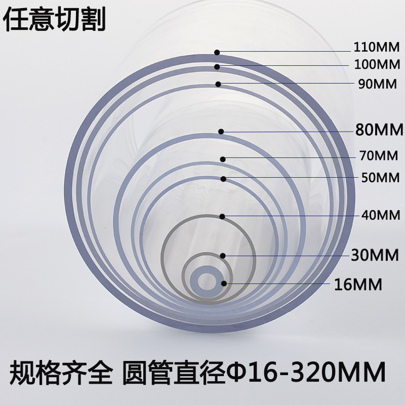 高透明アクリルプレキシガラス管 PMMA透明中空管 硬質管 円筒径3-1500mm