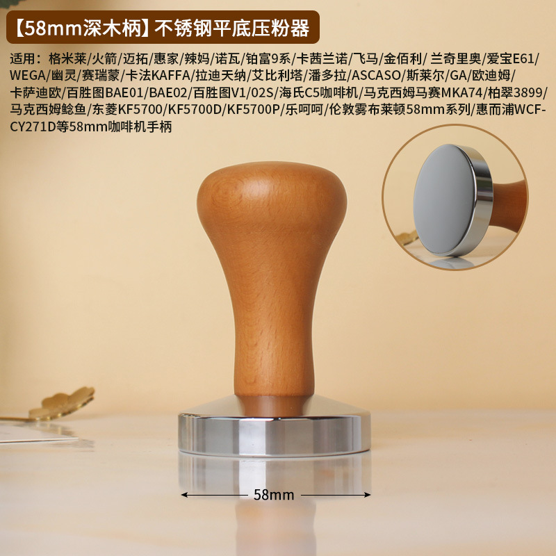 イタリアコーヒー圧粉ハンマー58mm実木充填機金属圧粉器中実平底51mm粉ハンマー53mm