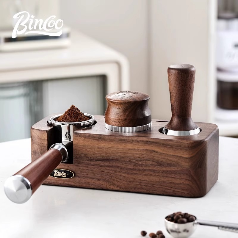 Bincooネジ圧粉器木柄意式弾性圧粉ハンマー51/58mmセット布粉器収納ベース