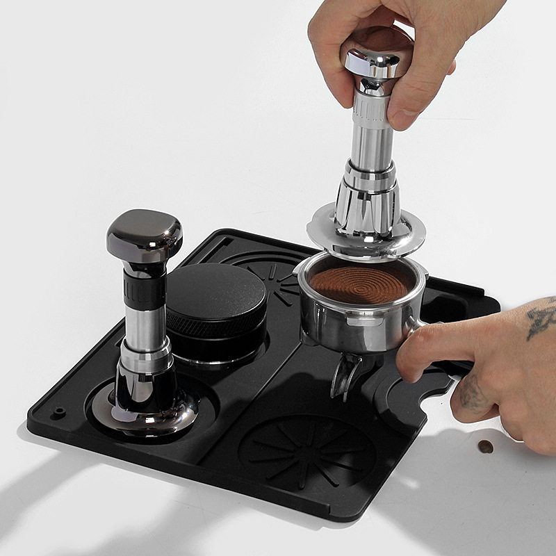 黒シリコン滑り止めマットコーヒーパウダー専用マットデスクトップステンレス粉ハンマーマットコーヒーマシンハンドルマット