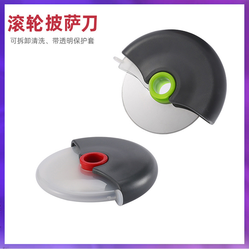 ✅新型円形ローラーのピザナイフのパンケーキ器は保護カバーを持っています。