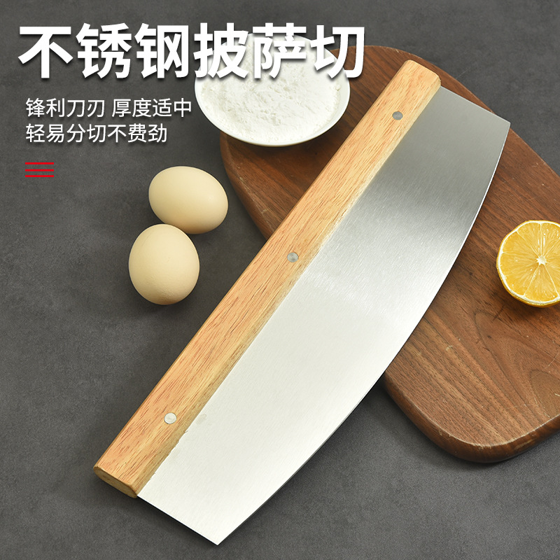 現物卸売り木柄ピザカッターアーチ型ステンレス家庭用ベーキングツール小麦粉ナイフ長型ケーキカッター