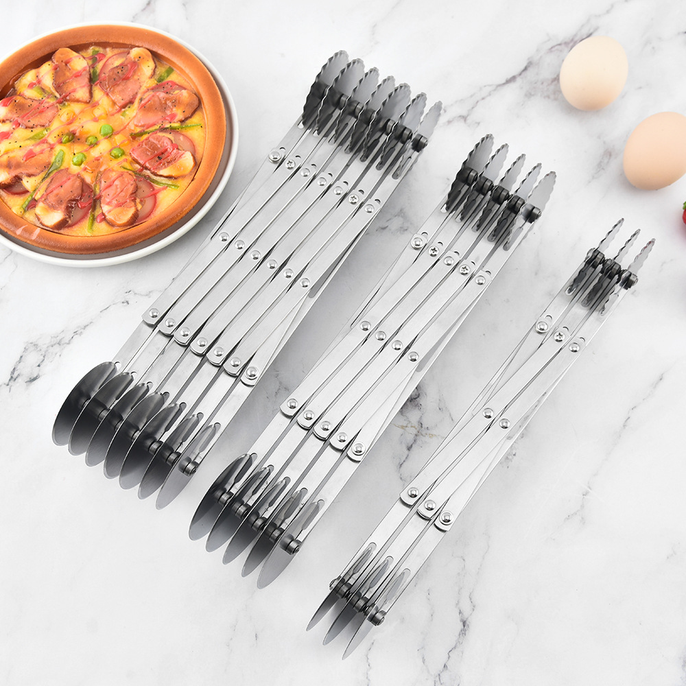 メーカー現物ステンレス二頭ピザローラーナイフ三五七輪パンケーキ器伸縮可能多輪切断焙煎