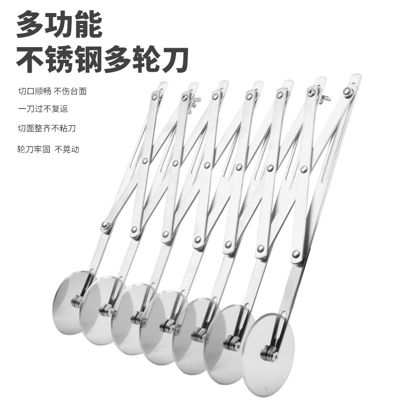 国境を越えたステンレス製の多輪パンケーキ器のローラーカッターは、ピザナイフの油条ナイフの多機能油条カッターを伸縮させることができる
