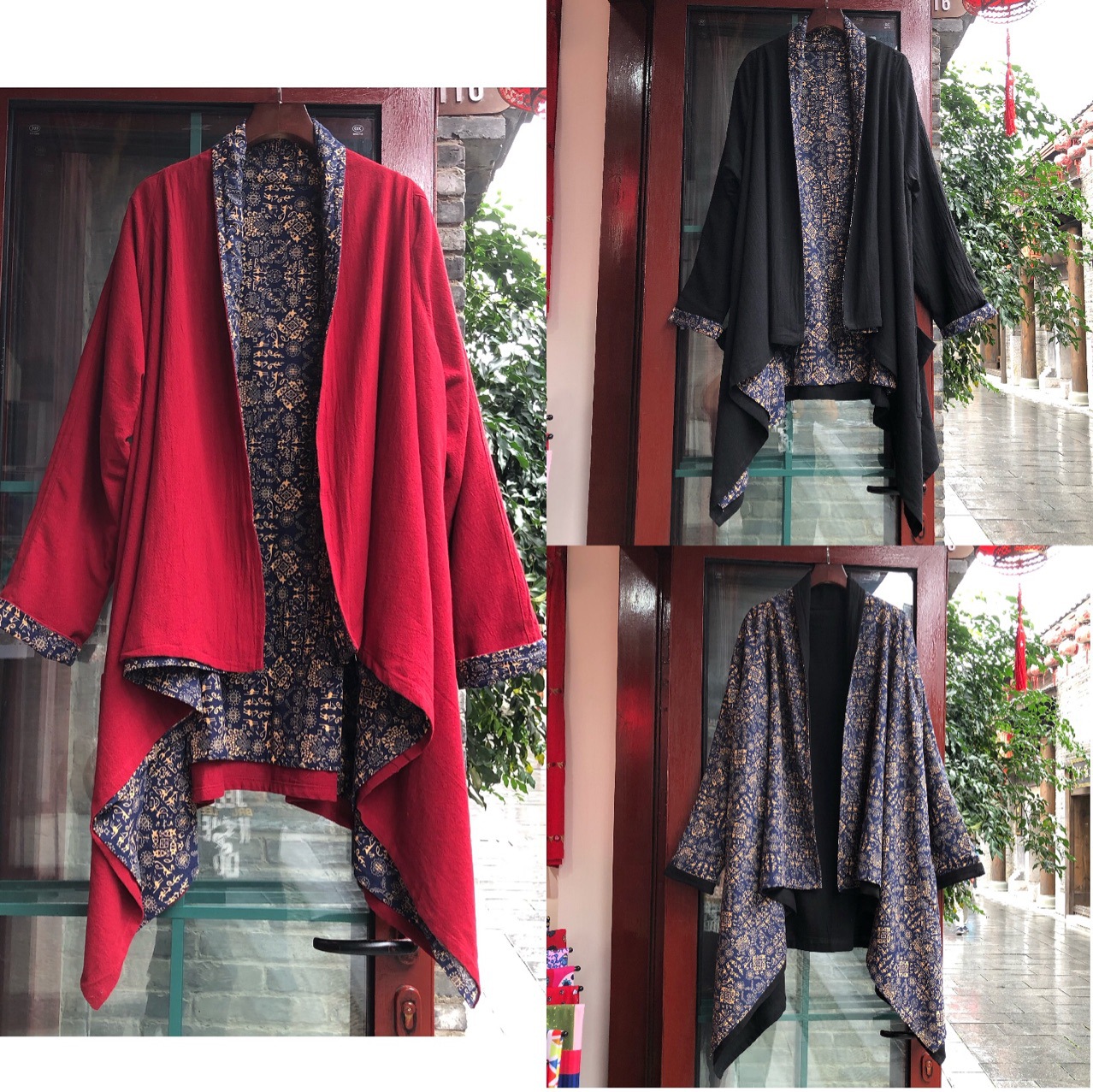 民族風カジュアルコート秋冬新作レトロ綿麻両面着メンズレディーストレンチコート観光民族衣装