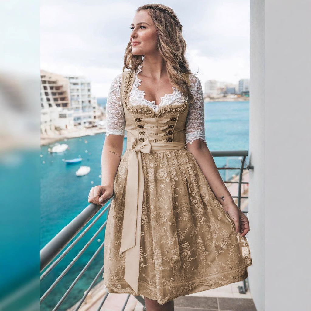 ドイツの伝統的なオクトーバーフェストイベント衣装ムビ黒ビールスーツステージスカートジャカードレースパフォーマンス衣装