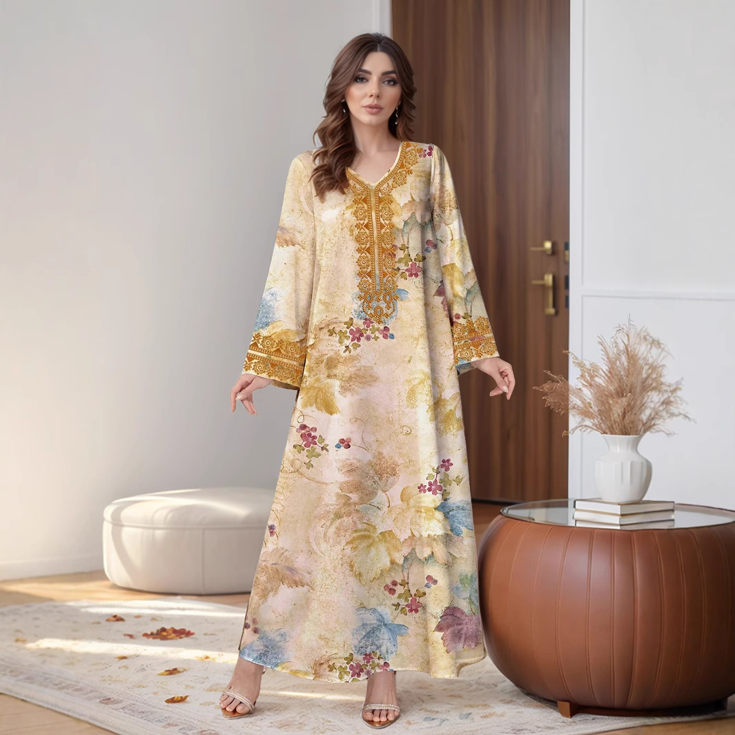 M311中東アラビアドバイレディースローブクロスボーダー欧米外国貿易レディースポジショニングプリント長袖ワンピース