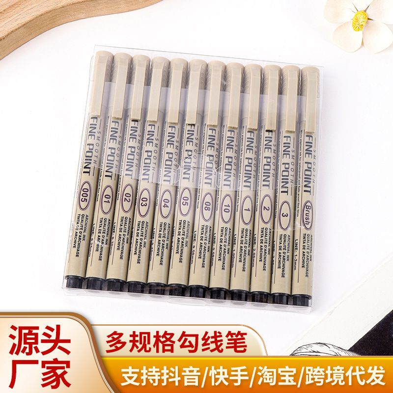針管ペン12サイズセット線筆アニメスケッチペンクロスボーダー熱売金水性顔料描画ペン