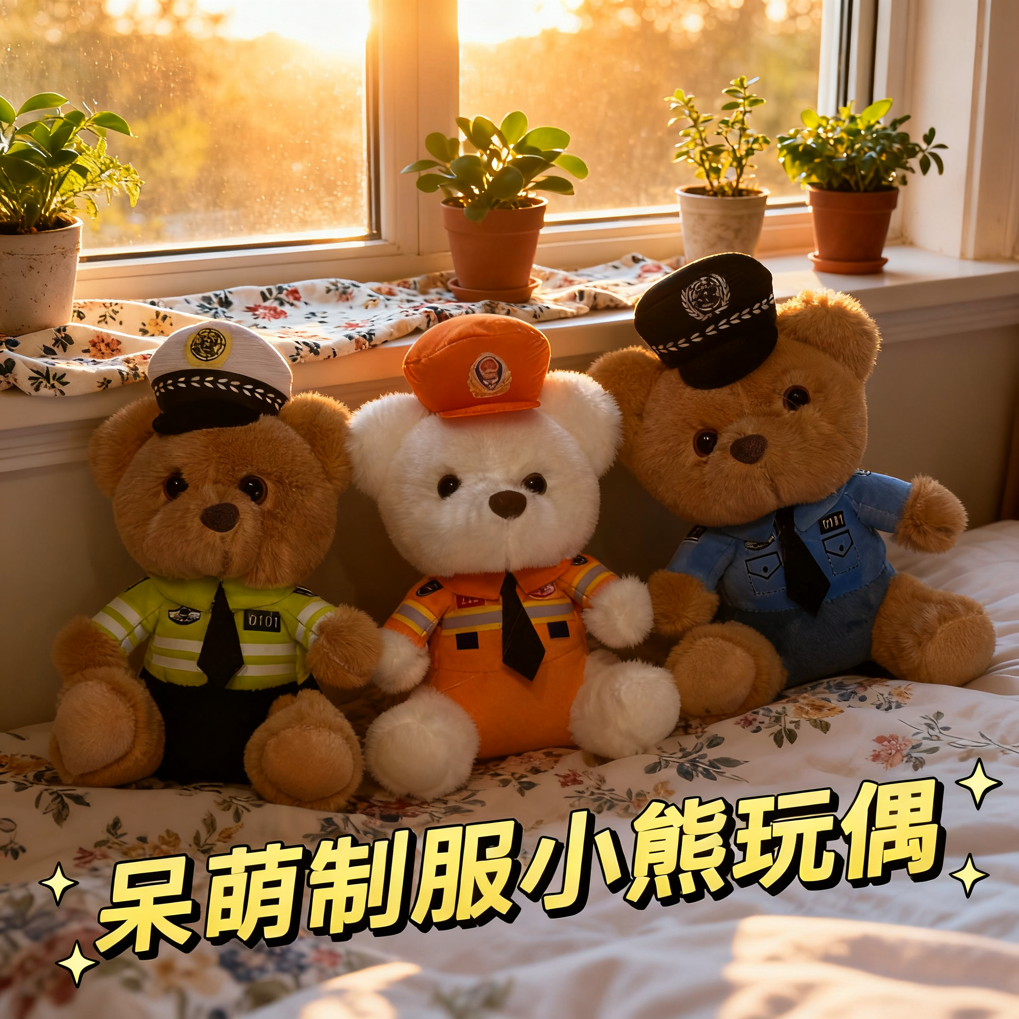 ネット赤かわいい萌え交通警官熊ストラップぬいぐるみ人形消防警察バッグ掛けキーホルダー人形