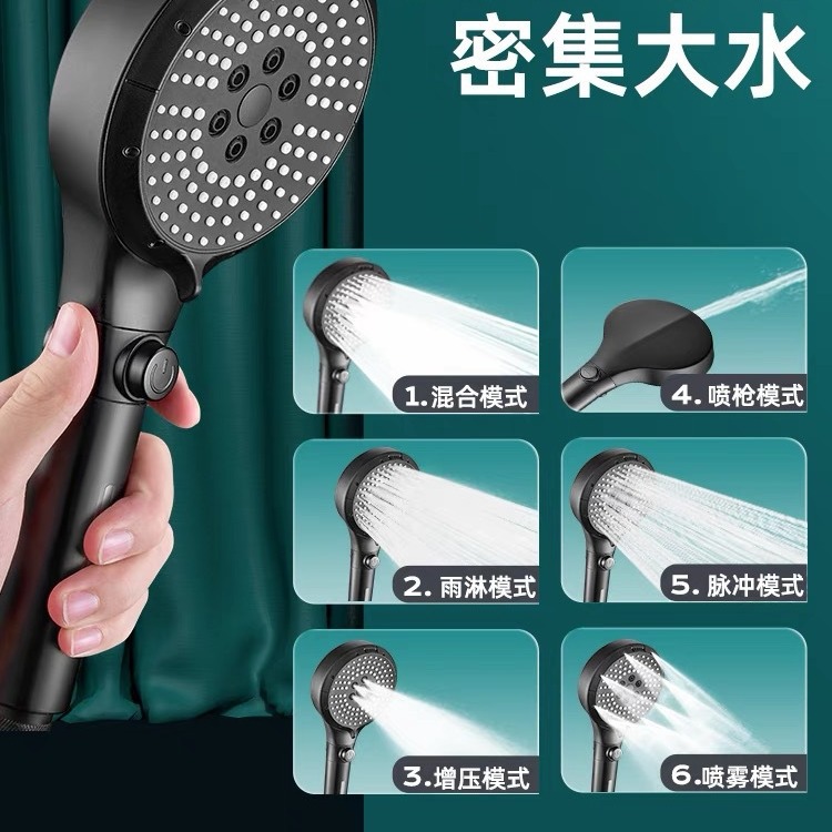増圧シャワーヘッド蛇口セット浴室シャワー黒武士五段ワンボタン止水手持ち蓮蓬頭