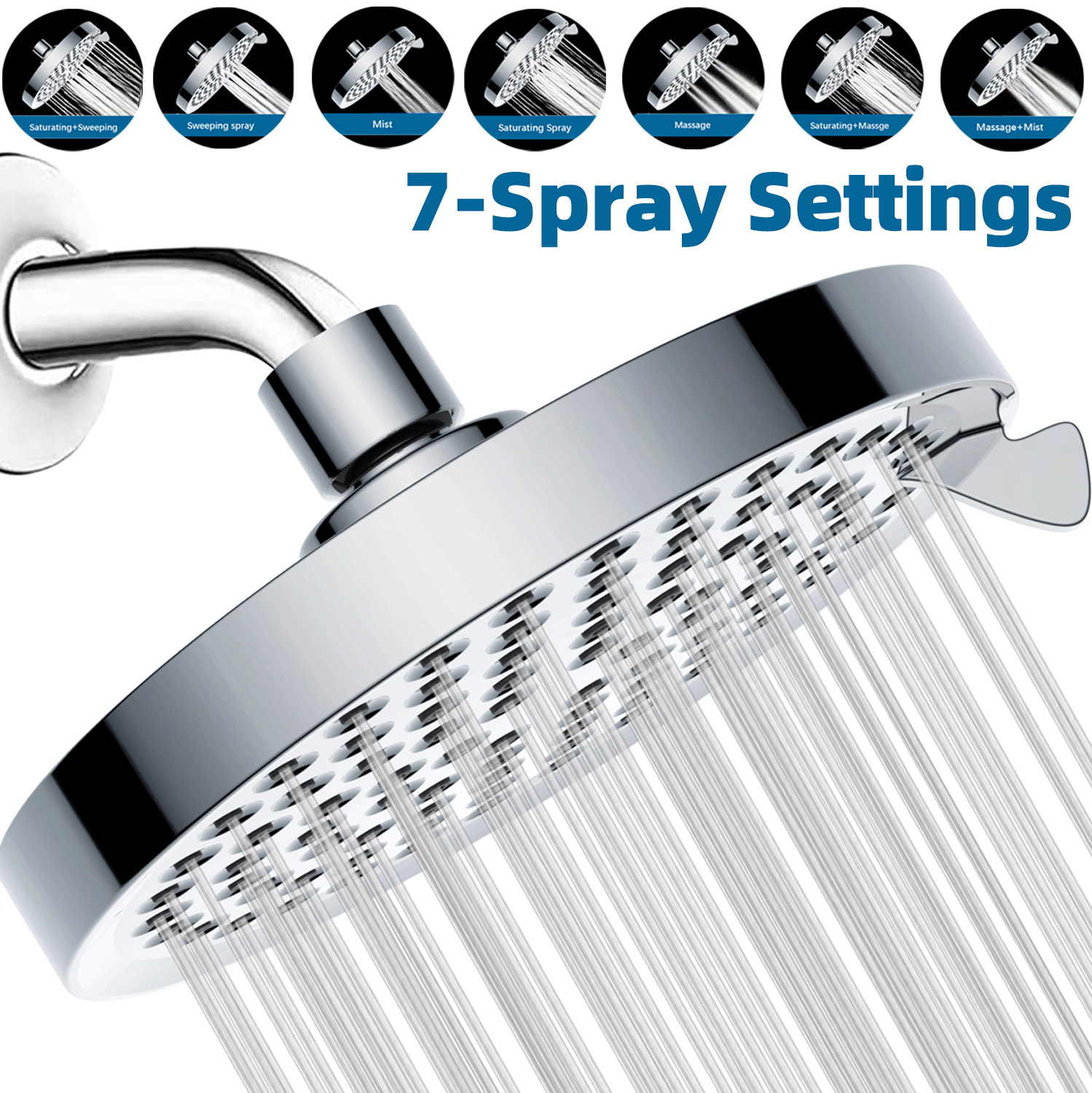 国境を越えた貿易 6inch シャワーブースト 7 機能シャワートップスプリンクラー小型シャワーヘッド浴室バスシャワーシャワー