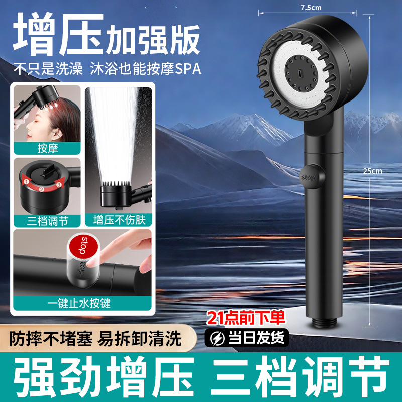 黒武士八段増圧シャワー家庭用シャワーヘッド多機能シャワーヘッド家庭用手持ちシャワーヘッド