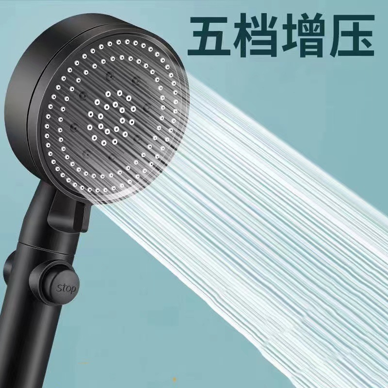 五段多機能大出水噴霧シャワー増圧手持ちシャワーヘッドフロスト黒蓮蓬頭セット