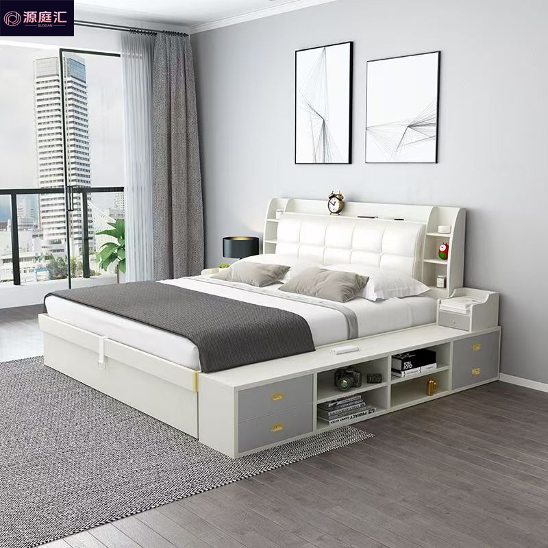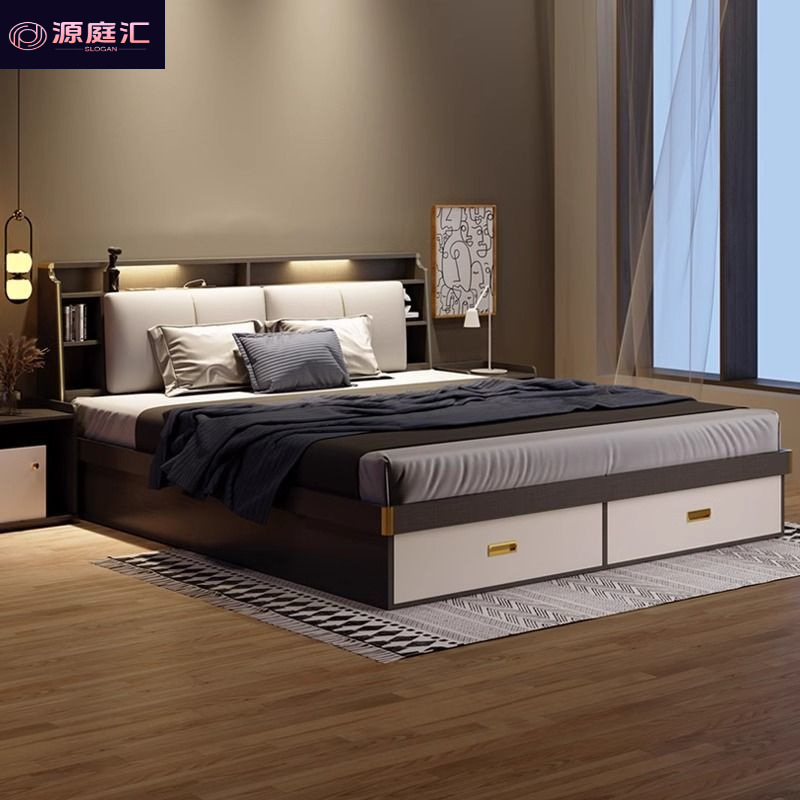 空気圧ハイボックス収納ベッドマスターベッドルーム小型ライト高級収納プレートベッドモダンシンプルネットレッド人気ダブルベッド