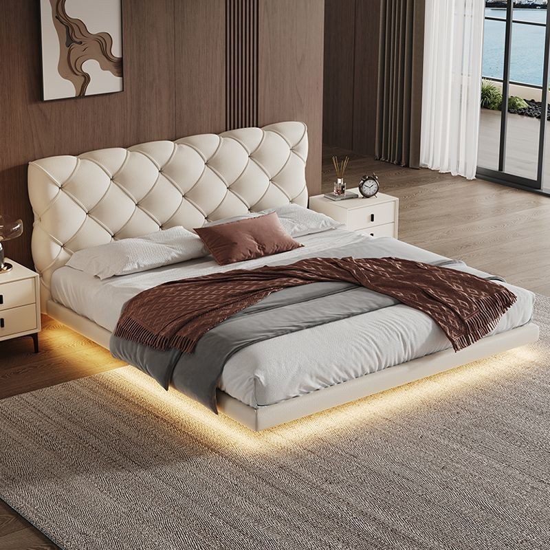 2025年式ベッド 家庭用寝室 ライトラグジュアリー クリエイティブ サスペンションベッド イタリア風高級感 小紅書抖音 ダブルベッド 家具