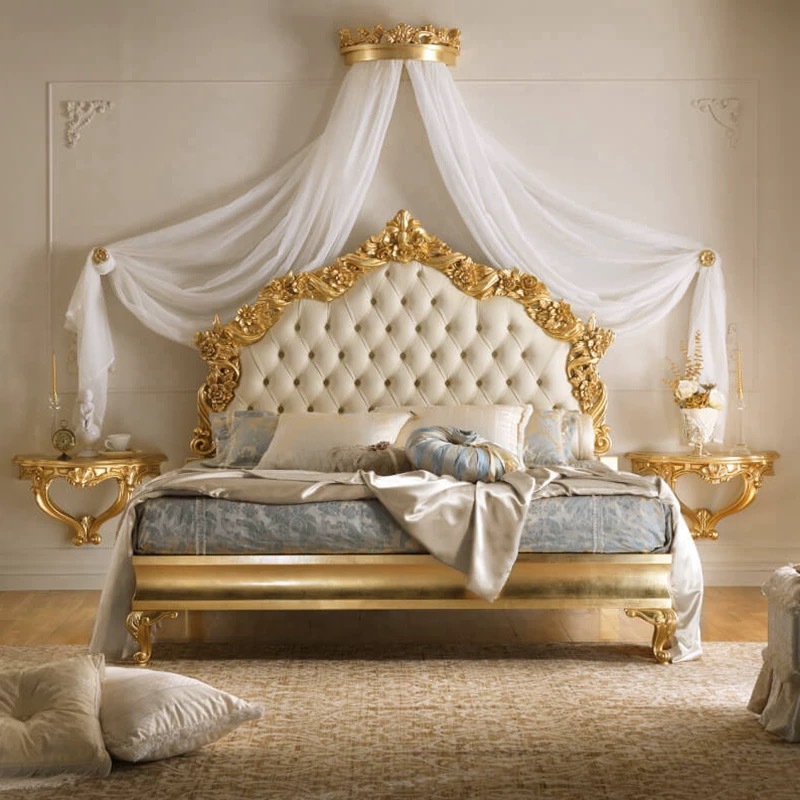 主臥ツインベッドヨーロッパ式実木お姫様ベッドネット赤フレーム彫刻皮ベッドフランス式金箔結婚ベッド寝室大ベッド