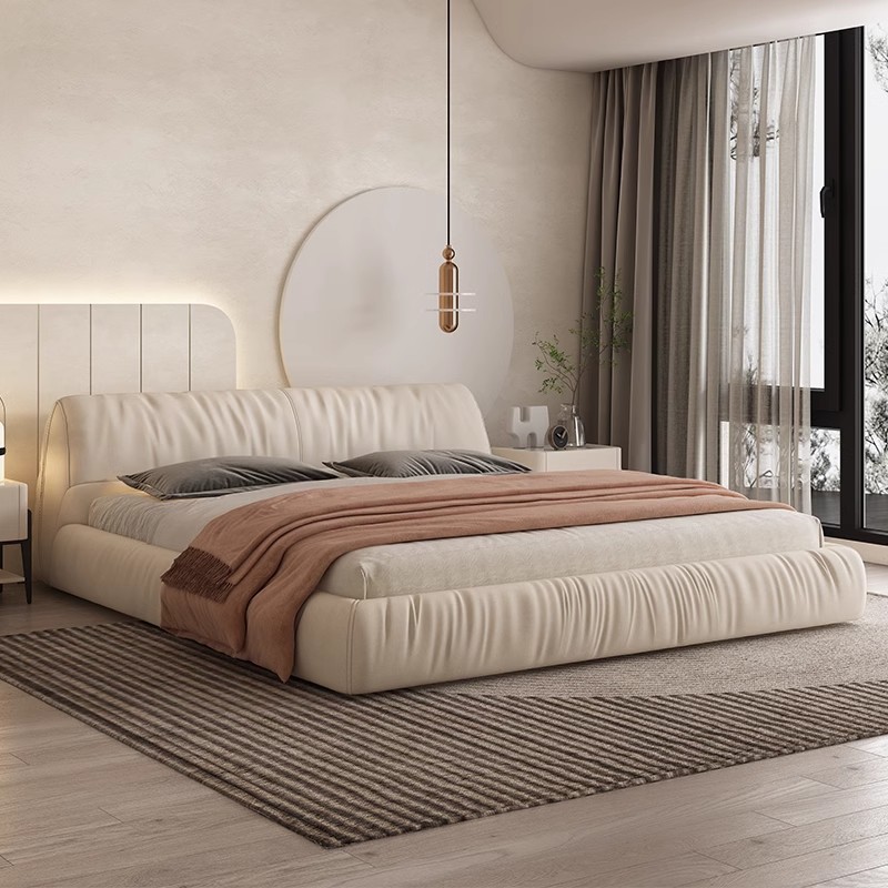 2025ファッション新型クリーム風真皮懸濁ベッド主寝ベッド現代シンプルなイタリア式軽贅沢結婚ベッド