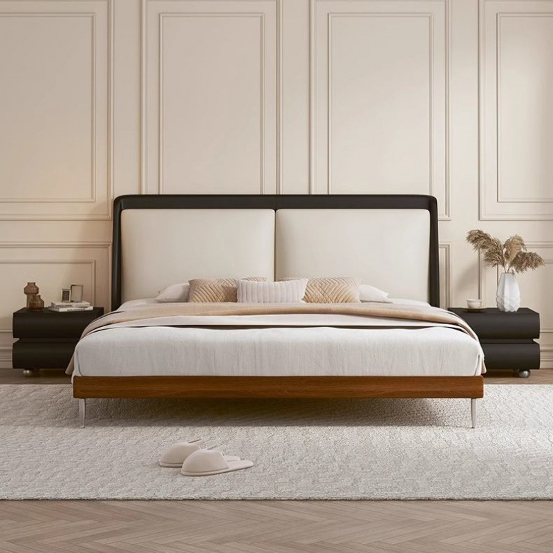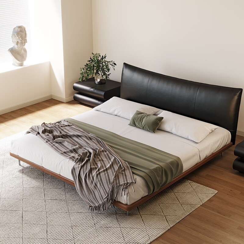 非常にシンプルな本革ベッドは軽くて豪華です。