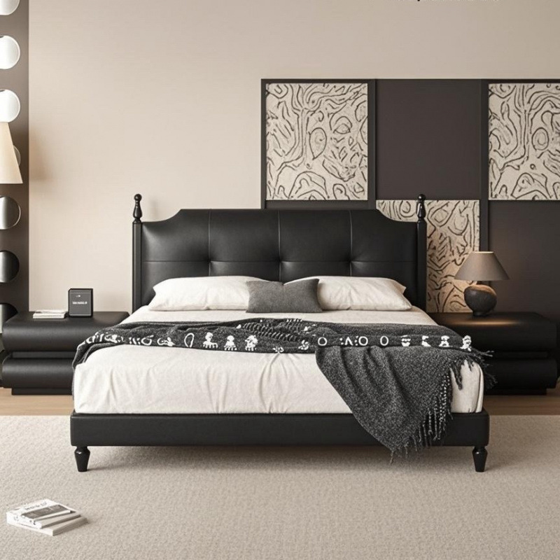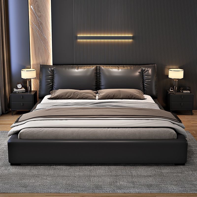黒の本革ベッドの皮ベッドは現代的にシンプルです。