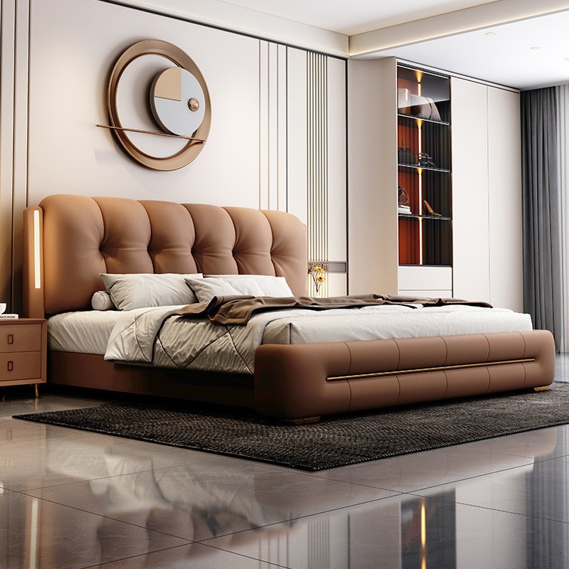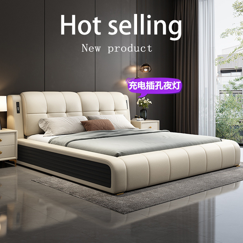 軽贅沢皮芸ベッドナパ真皮ベッド1.8メートルダブルベッド2024年新型ベッド現代シンプル1.5メートルレザーベッド