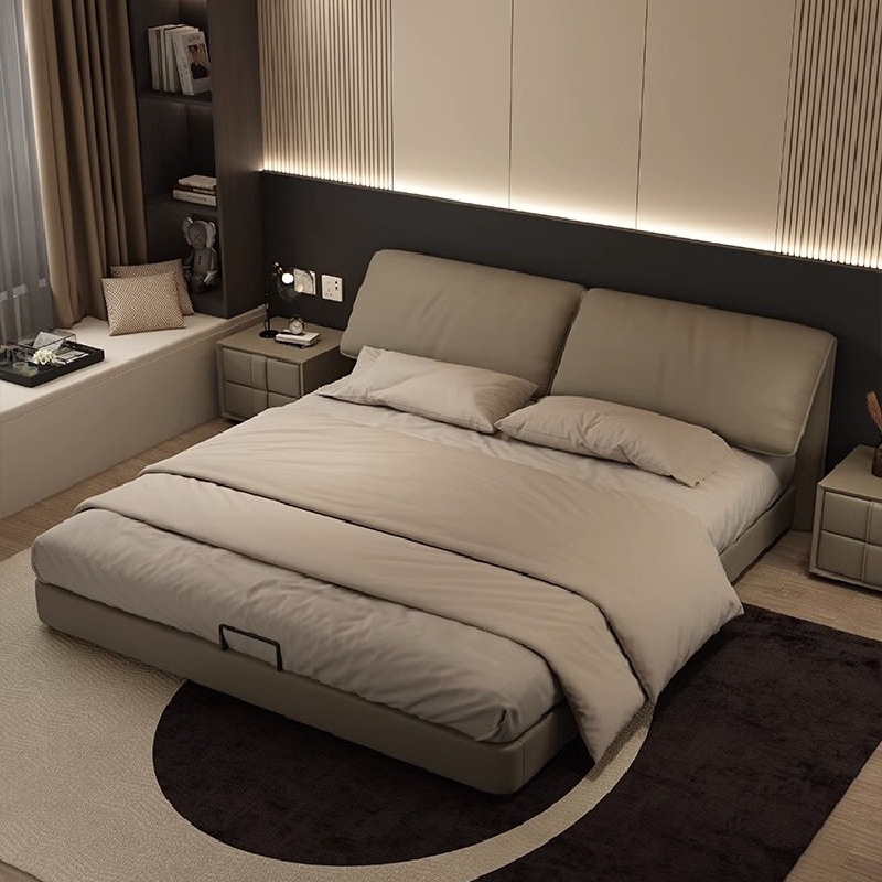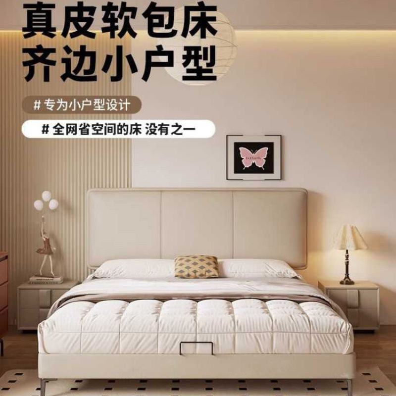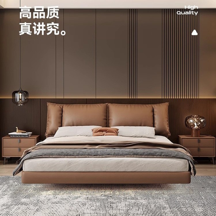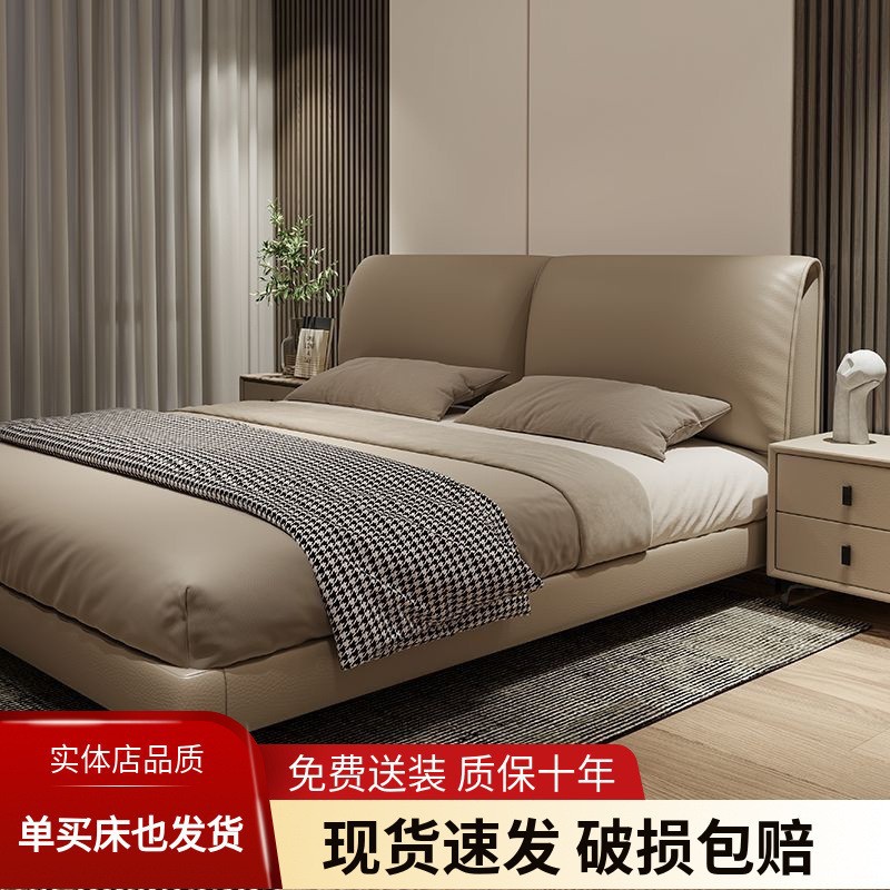 イタリア式現代シンプルな本皮ベッド主寝室クリーム風大ベッド高級皮芸二人背もたれソフトバッグ新商品