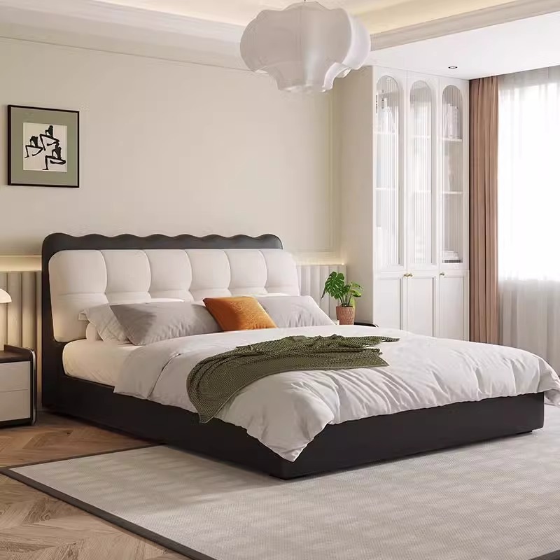 フランスクリーム風懸濁ベッド雲輪泡芙床シンプル現代真皮主臥小戸型